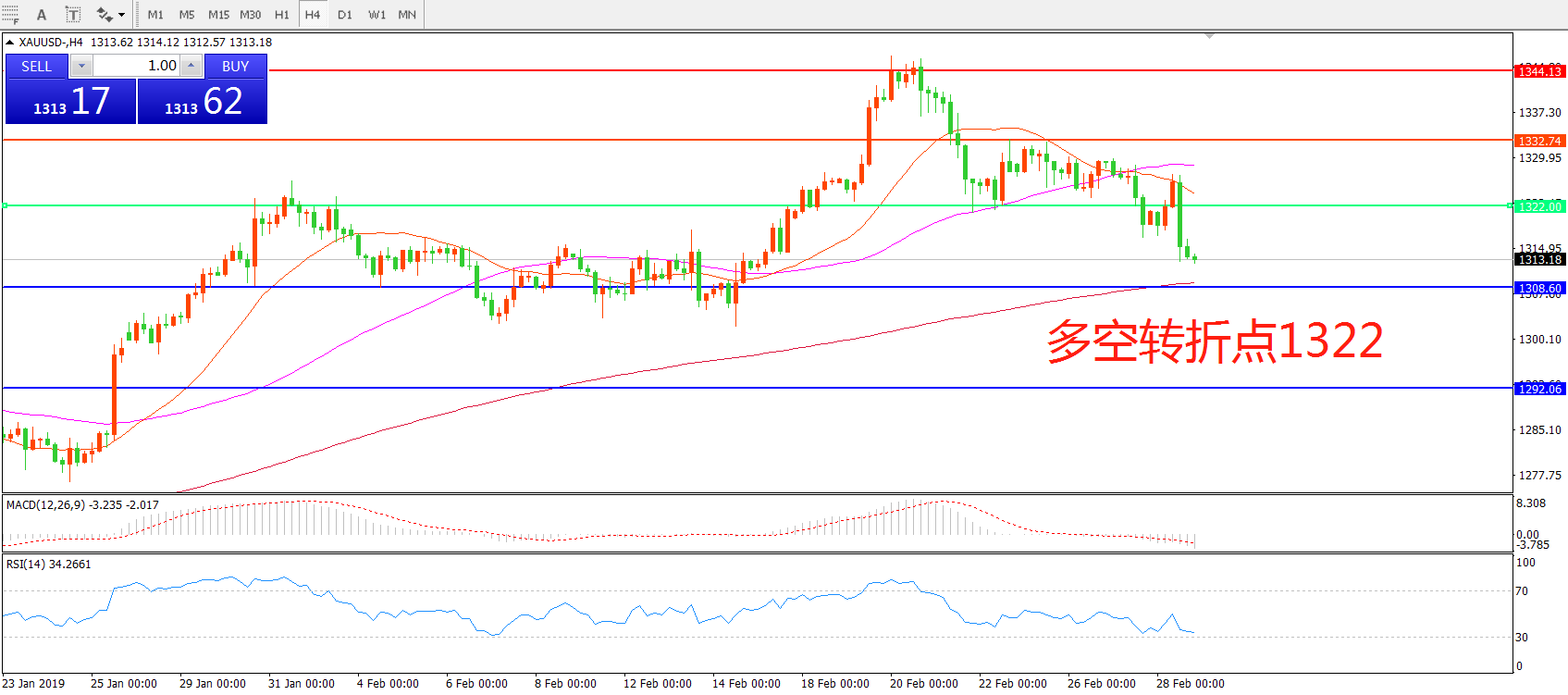 交易策略:在1322.00之下看跌,目标1308.00 1292.00