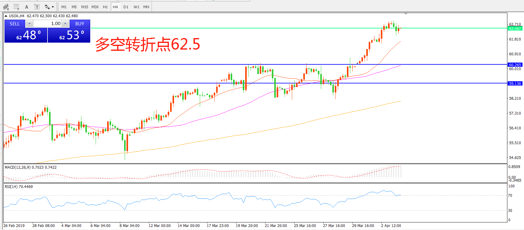 交易策略:在62.50之上看涨,目标64.50 65.50