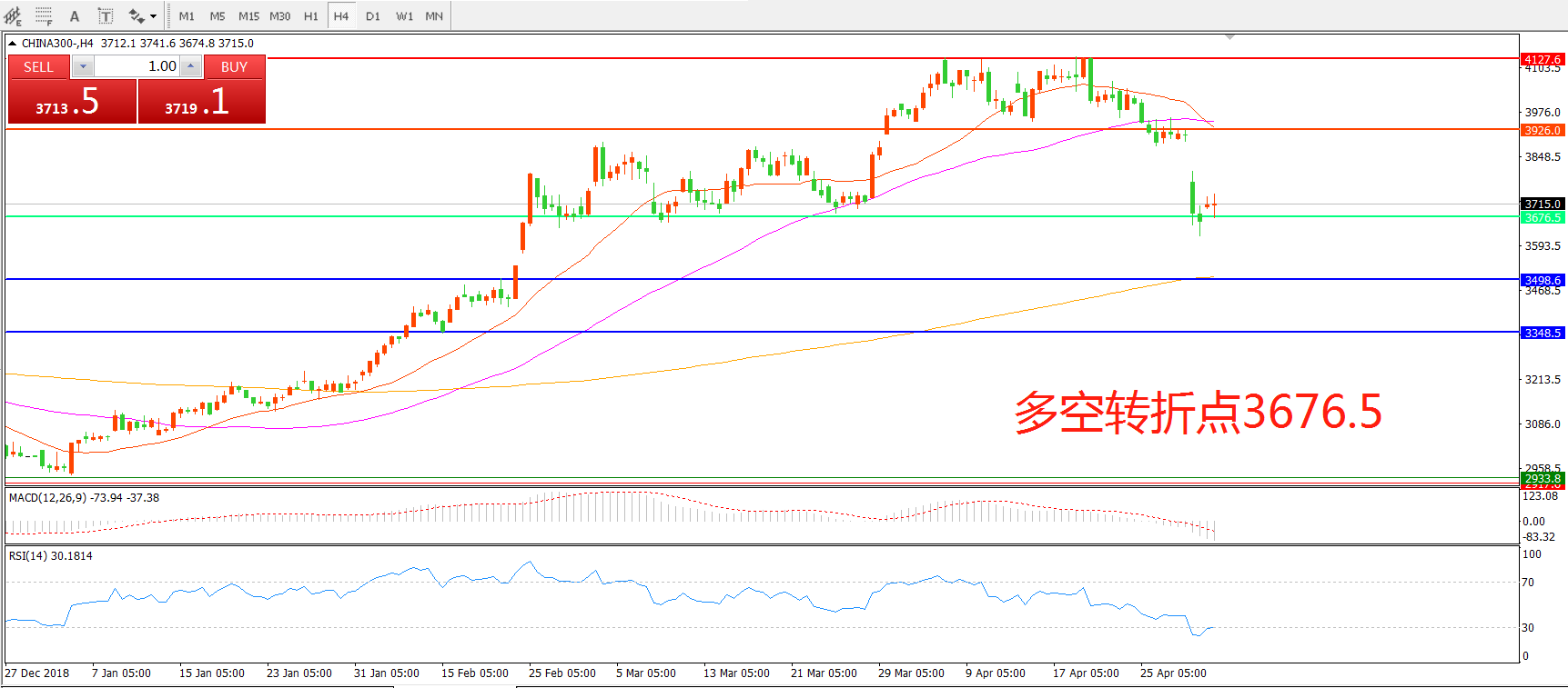 沪深300指数CHINA3004小时图