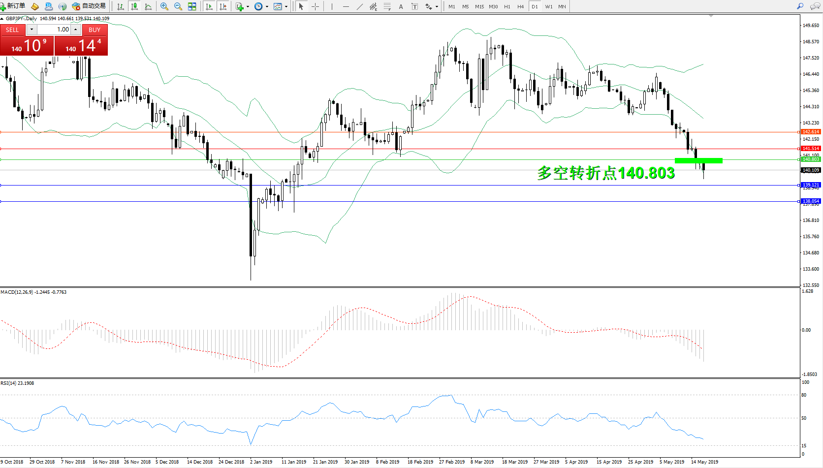 交易策略:140.803下方看跌,目标139.121138.054