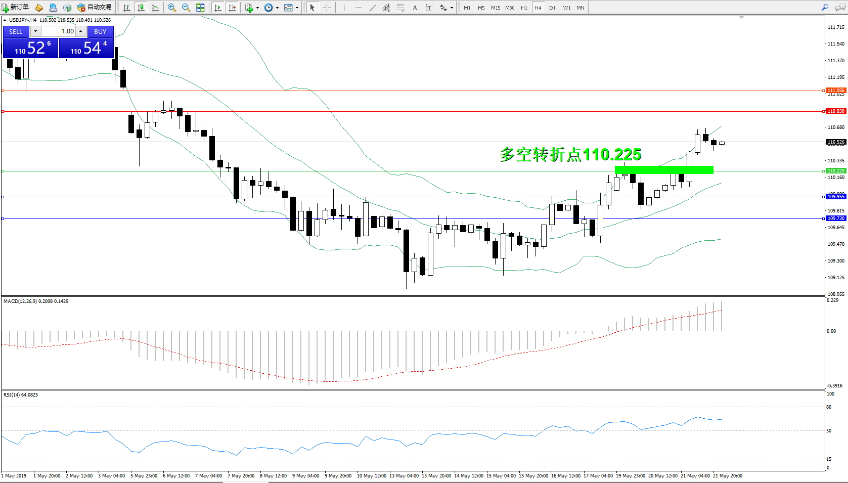 美元兑日元创5月7日以来两周新高至110.57,因市场避险情绪进一步消退。在周二日内美元走势强劲,同时因为贸易摩擦而引发的全球避险情绪有所降温的背景下,美元兑日元汇价终于站稳在110关口上方,而此后,汇价仍有进一步上行趋势。若110关口再度得而复失,那么109.02前期低位的保卫战就将再度打响,跌至108.50下方区间可能引发日本央行的出手干预,这在美国总统特朗普即将启程访日,双方贸易谈判前景仍存变数的背景下将显得尤其敏感,因此,短期内,美元兑日元很难进一步大幅探底。