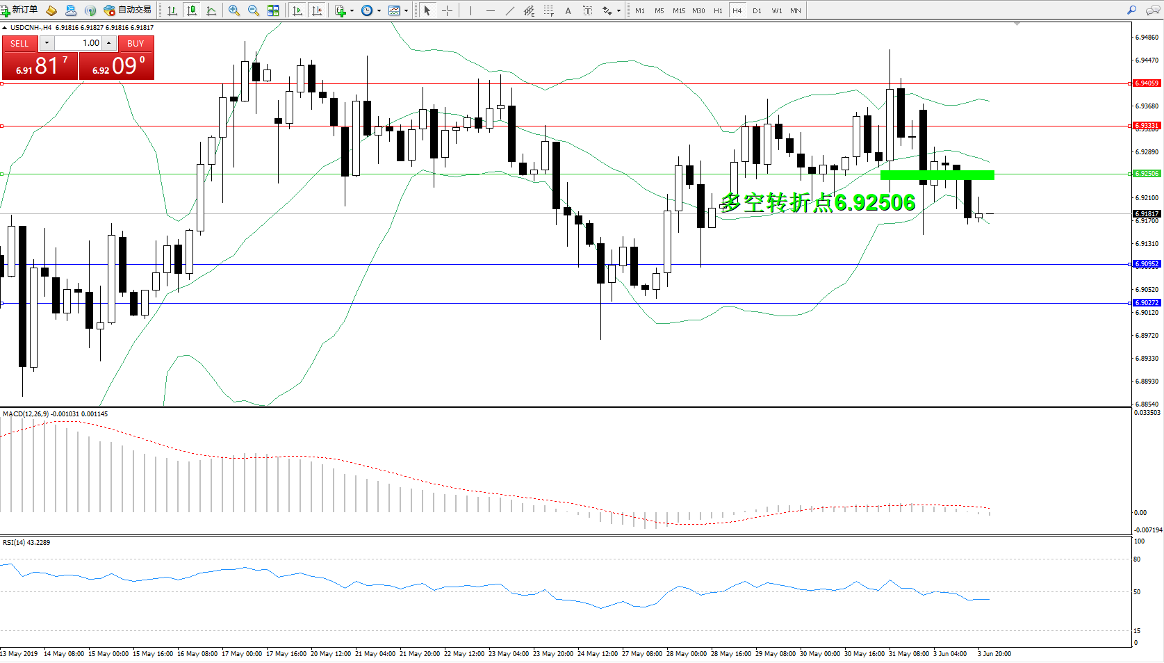交易策略:6.92506下方看跌,目标6.90952、6.90272
