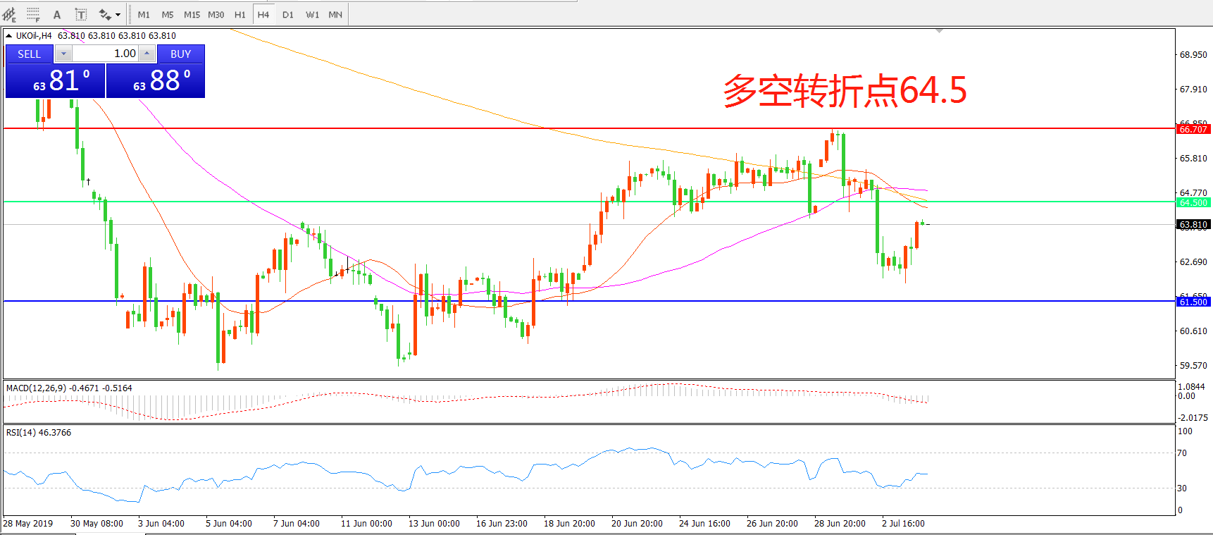 交易策略:在64.50之下看跌,目标61.50 57.00