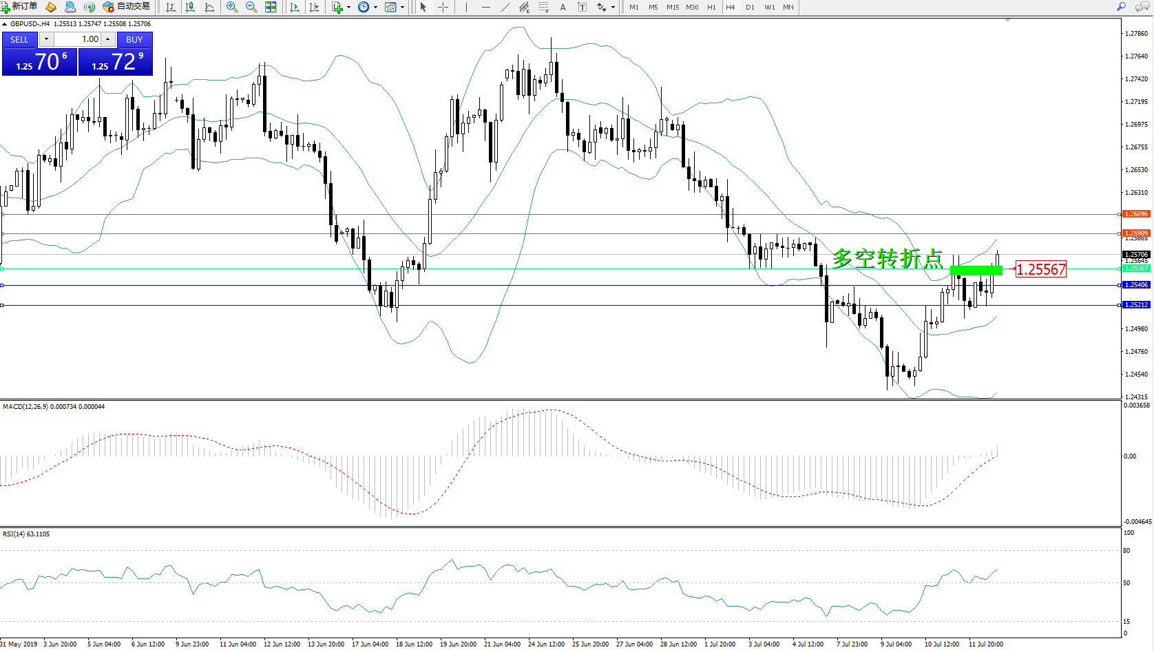 交易策略:1.25567上方看涨,目标1.259091.26096