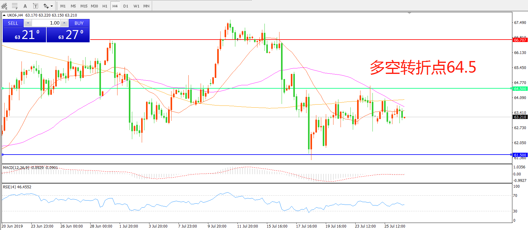 交易策略:在64.50之下看跌,目标61.50 57.50