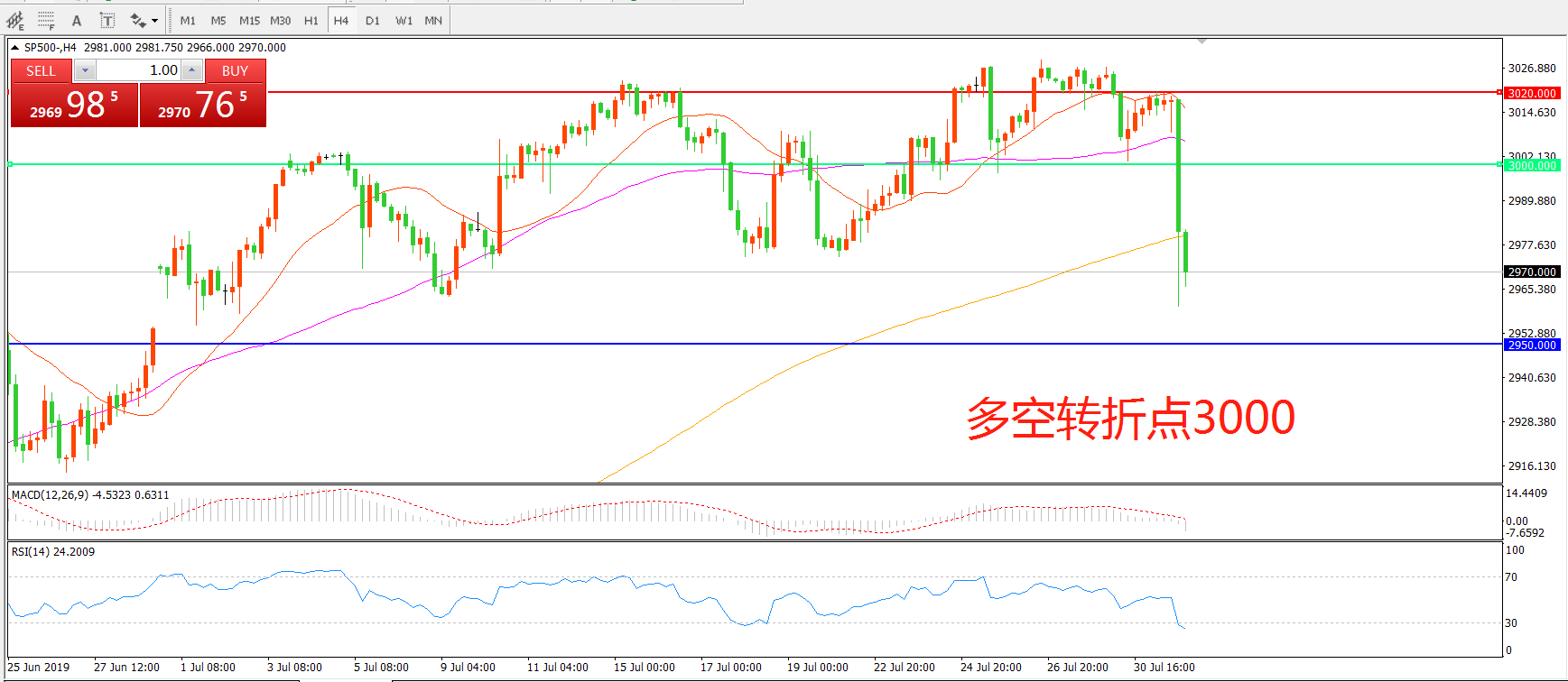 交易策略:在3000.00之下看跌,目标2950.00 2910.00