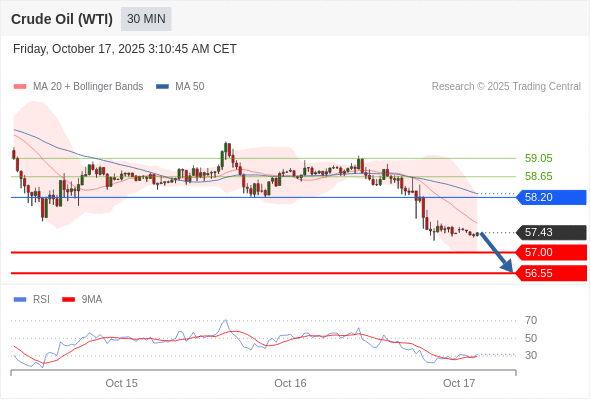 在 58.20 之下,看跌,目标价位为 57.00 ,然后为 56.55 。