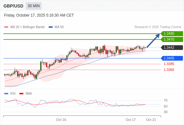 在 1.3405 之上,看涨,目标价位为 1.3470 ,然后为 1.3490 。