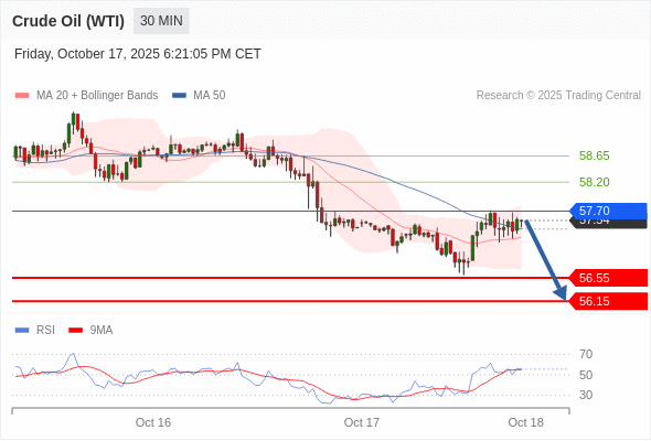 在 57.70 之下,看跌,目标价位为 56.55 ,然后为 56.15 。