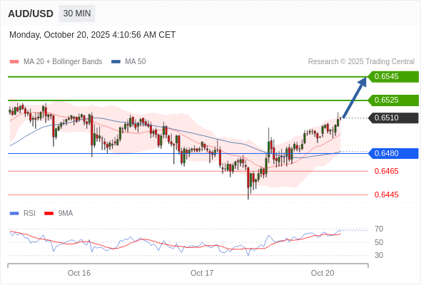 在 0.6480 之上,看涨,目标价位为 0.6525 ,然后为 0.6545 。
