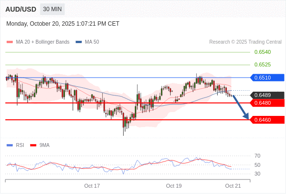 在 0.6510 之下,看跌,目标价位为 0.6480 ,然后为 0.6460 。