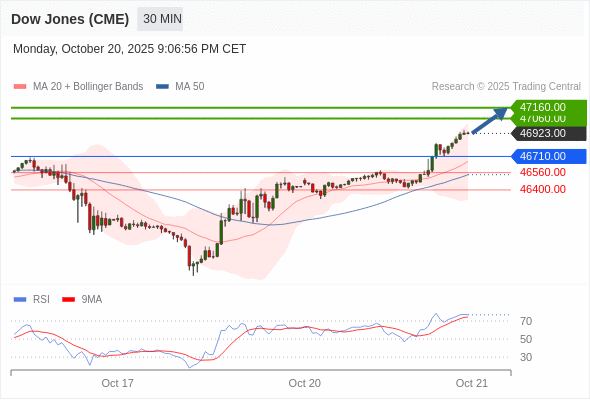 在 46710.00 之上,看涨,目标价位为 47060.00 ,然后为 47160.00 。
