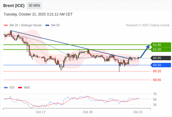 在 60.50 之上,看涨,目标价位为 61.50 ,然后为 61.80 。