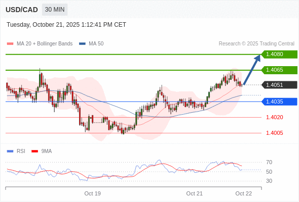 在 1.4035 之上,看涨,目标价位为 1.4065 ,然后为 1.4080 。