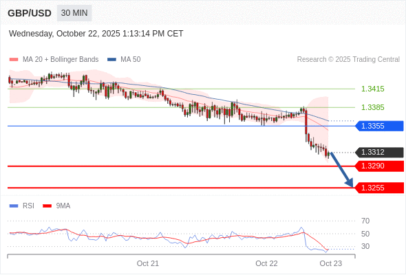 在 1.3355 之下,看跌,目标价位为 1.3290 ,然后为 1.3255 。