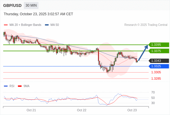 在 1.3325 之上,看涨,目标价位为 1.3375 ,然后为 1.3395 。