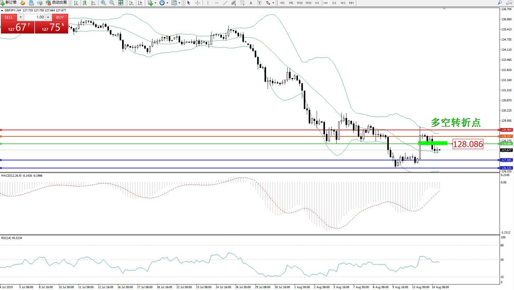 技术点评:空头下行趋势持续,低位短暂获得支撑后回升,但尚未改变空头向下走势,处于布林带指标中上轨区间震荡,在中轨附近得到短暂支撑,MACD指标空头区域低位缓慢回升至0轴下方,与K线图呈背离走势后延续上行,RSI指标纠结于50均衡线下方窄幅整理;