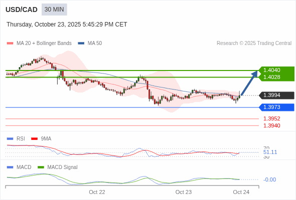 美元/加元 当日内 : 调整至 1.3973 处,在反弹上升之前。