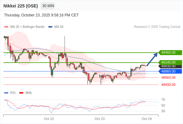 在 48860.00 之上,看涨,目标价位为 49140.00 ,然后为 49460.00 。