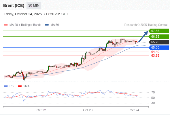 在 65.00 之上,看涨,目标价位为 66.55 ,然后为 67.35 。