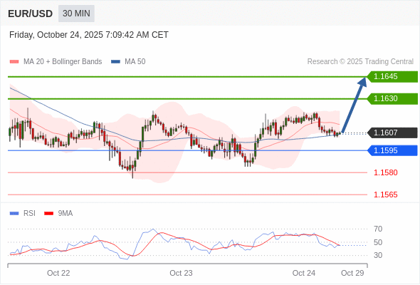 在 1.1595 之上,看涨,目标价位为 1.1630 ,然后为 1.1645 。