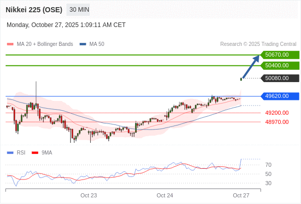 在 49620.00 之上,看涨,目标价位为 50400.00 ,然后为 50670.00 。