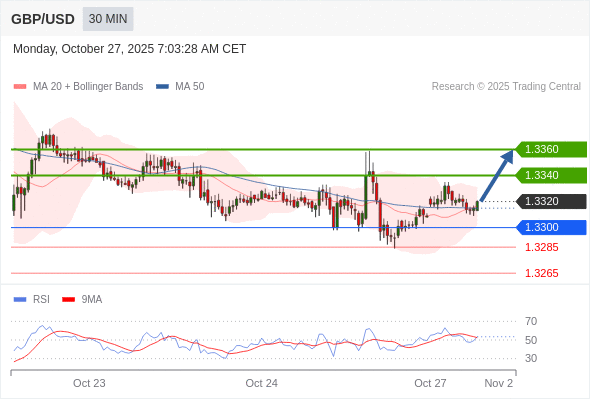 在 1.3300 之上,看涨,目标价位为 1.3340 ,然后为 1.3360 。