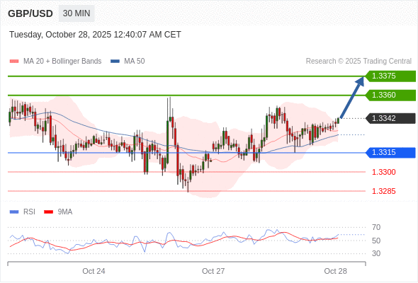 在 1.3315 之上,看涨,目标价位为 1.3360 ,然后为 1.3375 。