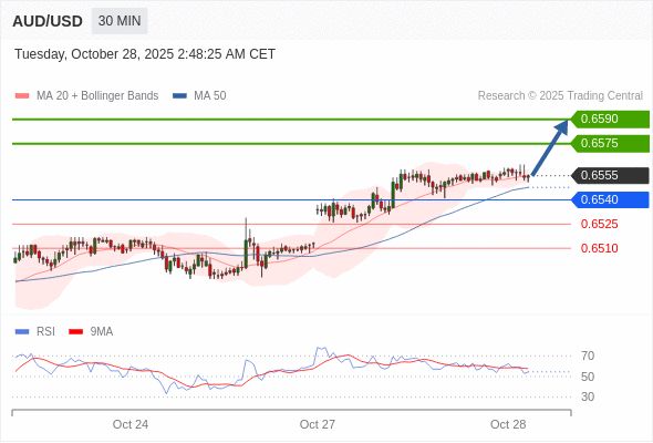 在 0.6540 之上,看涨,目标价位为 0.6575 ,然后为 0.6590 。
