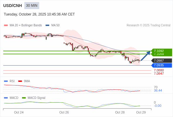 替代方案: 在7.0935以下,期待7.0880和7.0847。