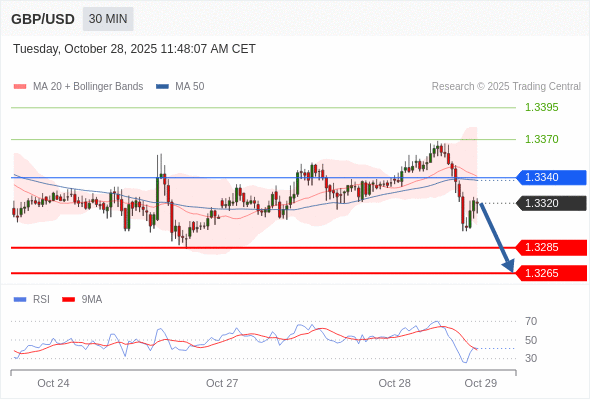 在 1.3340 之下,看跌,目标价位为 1.3285 ,然后为 1.3265 。