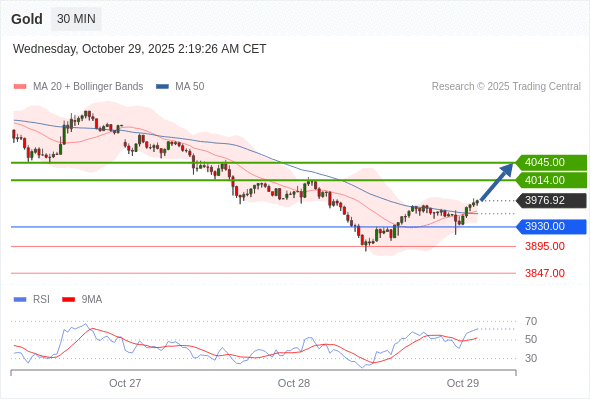 在 3930.00 之上,看涨,目标价位为 4014.00 ,然后为 4045.00 。
