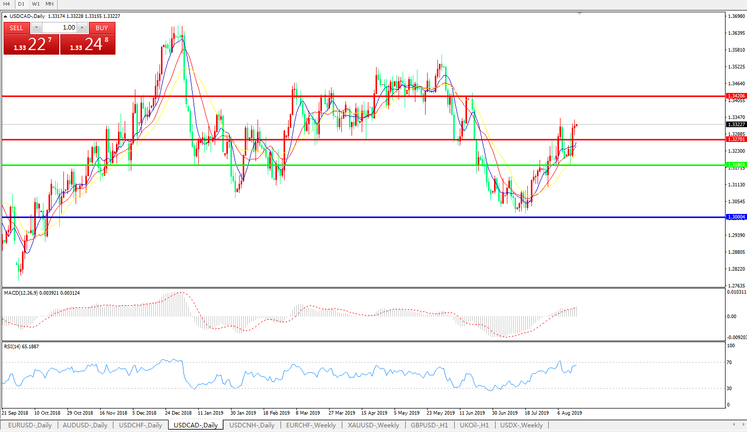 技术面简析:日线图均线整体呈发散上攻态势,汇价延续冲高态势一度创出新高,MACD运行于0轴上方且动能柱量能有放量迹象,RSI有再度走高迹象,预计汇价短期汇价料将进一步上行试探1.34附近压制。