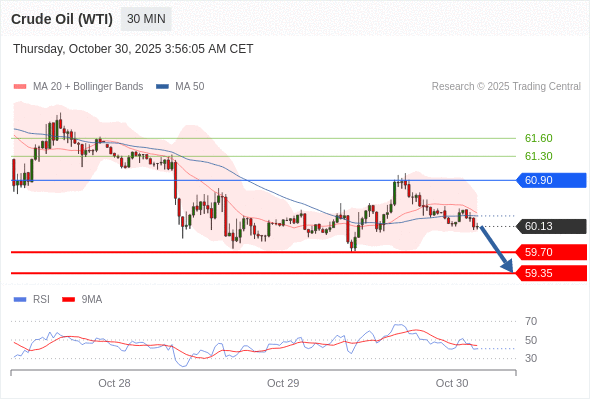 在 60.90 之下,看跌,目标价位为 59.70 ,然后为 59.35 。