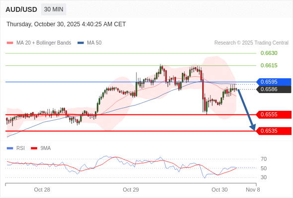 在 0.6595 之下,看跌,目标价位为 0.6555 ,然后为 0.6535 。