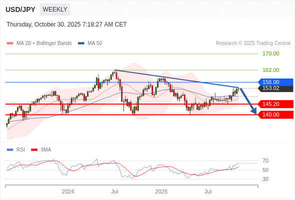 在 156.00 之下,看跌,目标价位为 145.20 ,然后为 140.00 。
