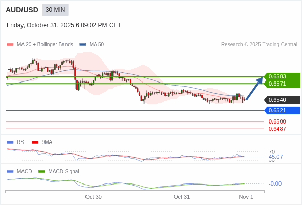 澳元/美元 当日内 : 有上涨的可能,目标价位定在 0.6583 。