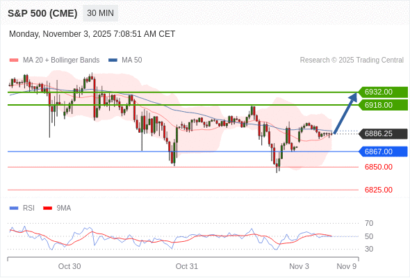 在 6867.00 之上,看涨,目标价位为 6918.00 ,然后为 6932.00 。
