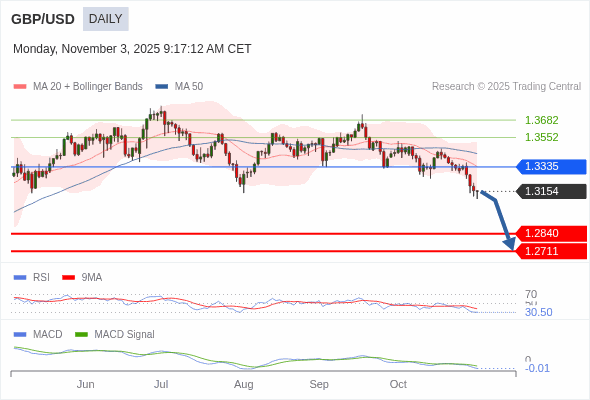英镑/美元 短线 : 看跌,在 1.3335 之下。
