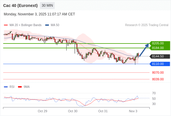 在 8110.00 之上,看涨,目标价位为 8184.00 ,然后为 8205.00 。