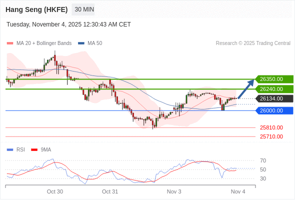 交易策略: 在 26000.00 之上,看涨,目标价位为 26240.00 ,然后为 26350.00 。