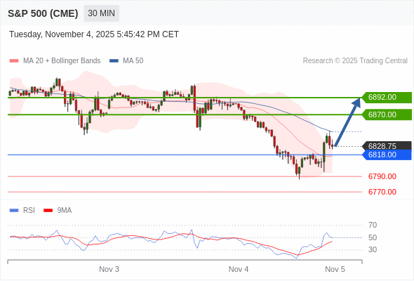 交易策略: 在 6818.00 之上,看涨,目标价位为 6870.00 ,然后为 6892.00 。