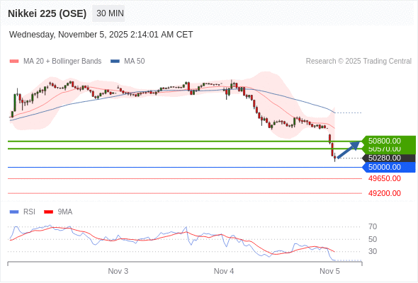 日经225股指期货 (OSE) 当日内: 超短线(当日内)支撑位在50000.00附近。