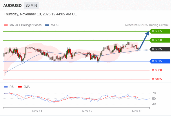 在 0.6515 之上,看涨,目标价位为 0.6550 ,然后为 0.6565 。