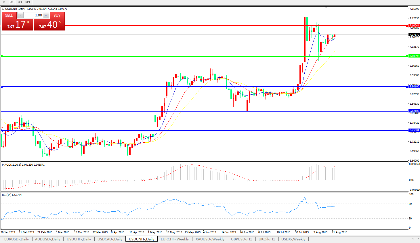 交易策略: 在7.0000之上,看涨,目标价位为7.1000,然后为7.2000。