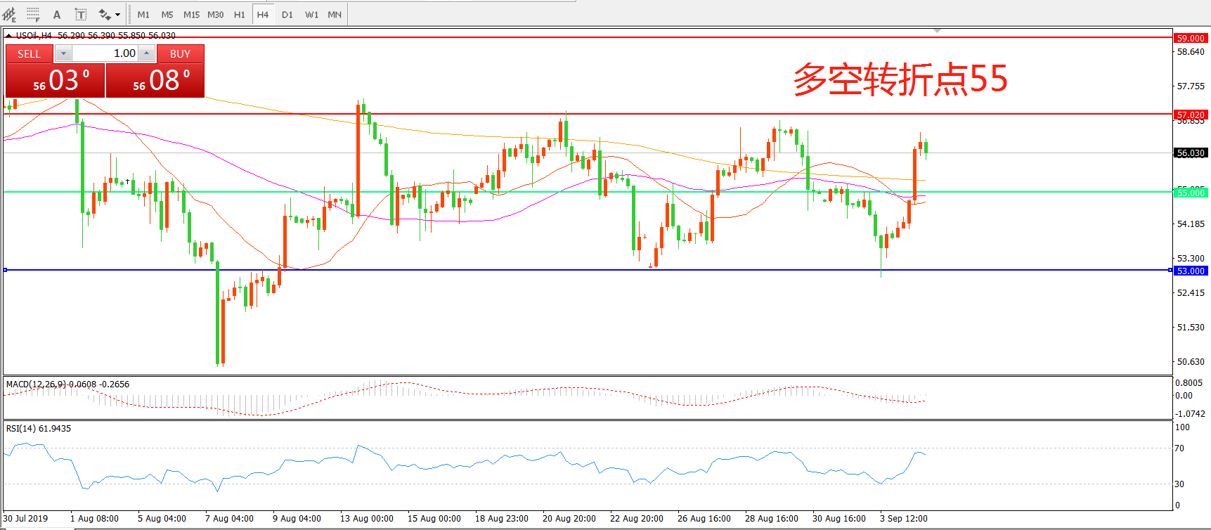 交易策略:在55.00之上看涨,目标57.00   59.00