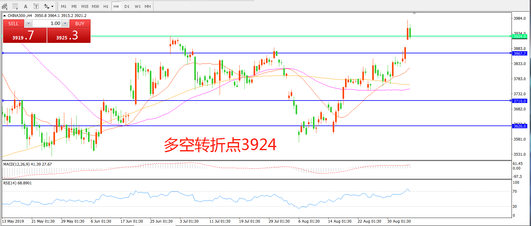 交易策略:在3924.00之上看涨,目标4035.00       4100.00