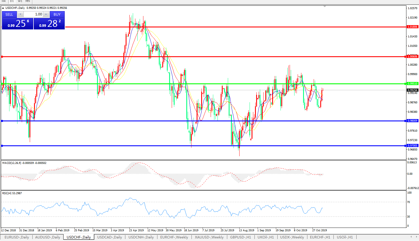 交易策略:0.9950下方看跌,目标0.9800、0.9700