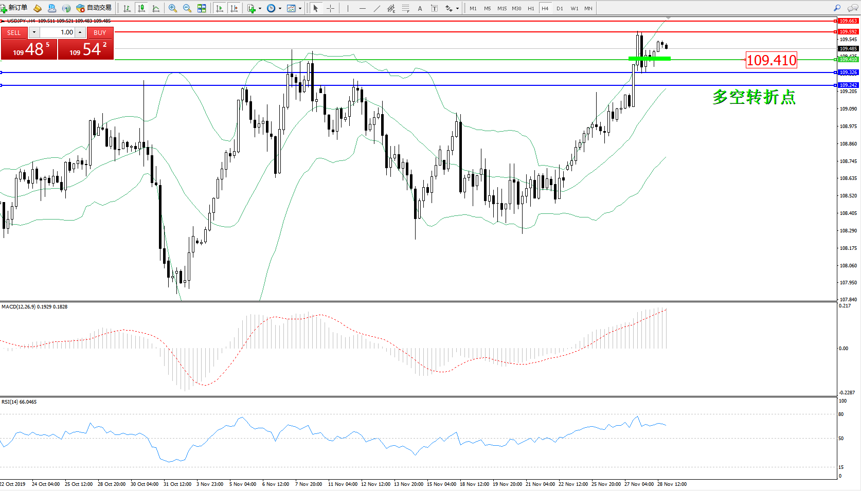 美元兑日元跌0.03%至109.51;美国感恩节前的市场乐观情绪助推股市再创新高,也进一步打压避险资产买需。因在此后两周美联储官员都不会有进一步讲话的背景下,美联储年内最后一次会议按兵不动已成定局,这确保了美元指数继续坚挺;考虑到日内美国进入假期交投将清淡,基本面更多突发事件可能对汇价产生超比例的影响,因为投资者尤须对此保持高度警惕。