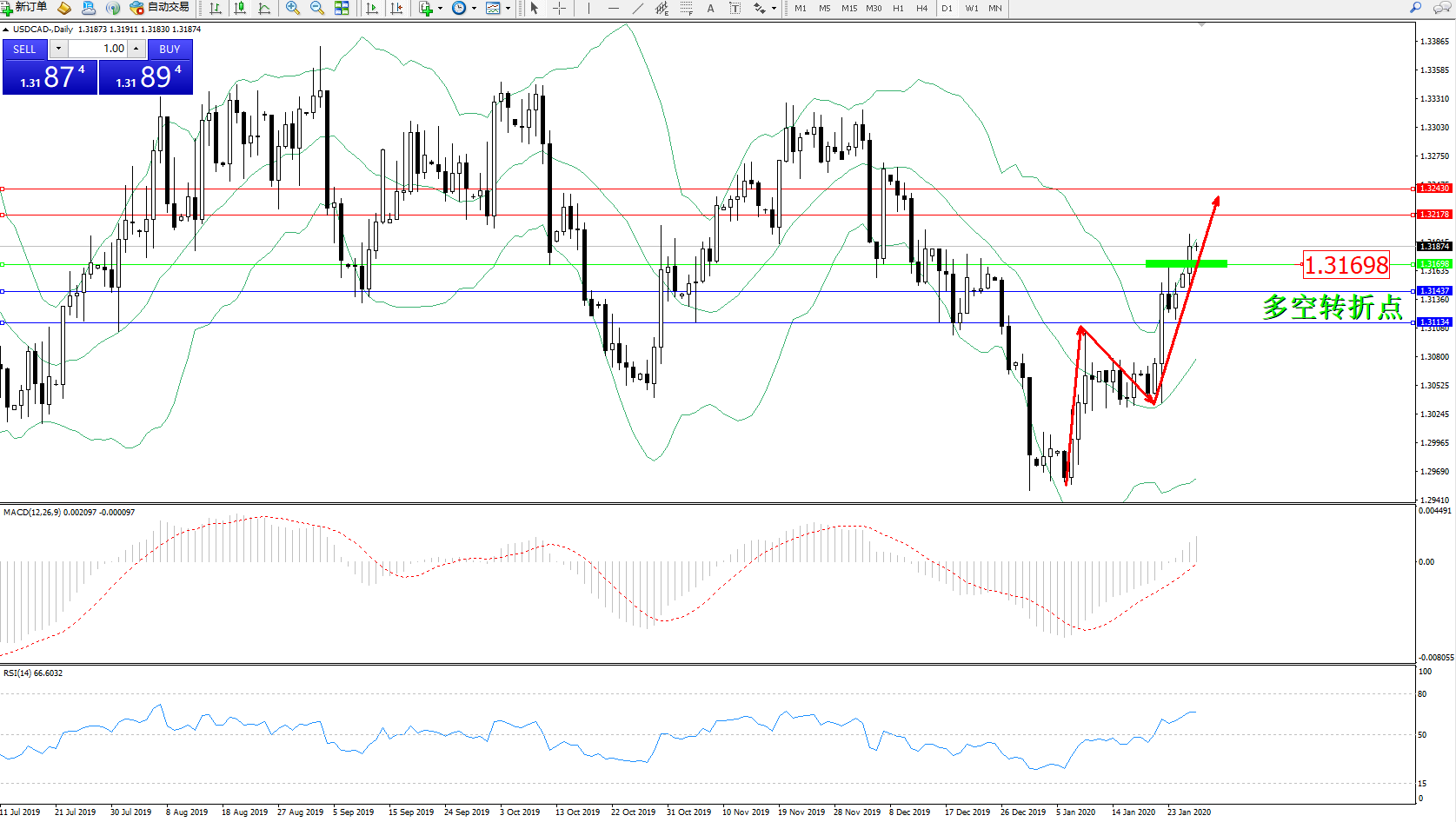 交易策略:1.31698上方看涨,目标1.321781.32430